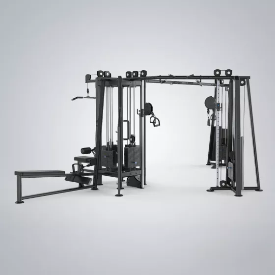 ในด้านโครงสร้าง ตัวเครื่องใช้เหล็กหนาถึง 2.5 มม. เพื่อรองรับแรงดึงจากระบบ Weight Stack และการใช้งานต่อเนื่อง การรวมสถานีฝึกหลายรูปแบบไว้ในชุดเดียวช่วยลดการใช้พื้นที่ เพิ่มความคุ้มค่าในการจัดอุปกรณ์ และทำให้การจัดโซนฝึกเป็นระเบียบมากขึ้น