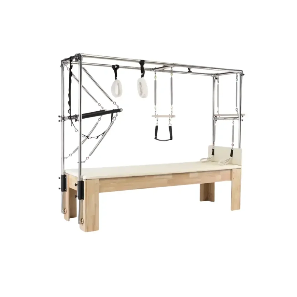 - ระบบสปริงคุณภาพสูง ปรับระดับได้ – cadillac pilates มีสปริงคุณภาพสูงที่ปรับระดับได้ตามโปรแกรมฝึก ช่วยให้สามารถปรับความท้าทายของแต่ละท่าให้เหมาะกับระดับ พิลาทิสแคดิลแลคใช้ระบบสปริงเกรดพรีเมียม เครื่องพิลาทิสที่ควบคุมแรงต้านได้แม่นยำ อุปกรณ์พิลาทิสที่ให้ความต้านทานนุ่มนวล การเล่นพิลาทิสที่ปรับความยากง่ายได้ เครื่องออกกำลังกายพิลาทิสระบบสปริงล้ำสมัย