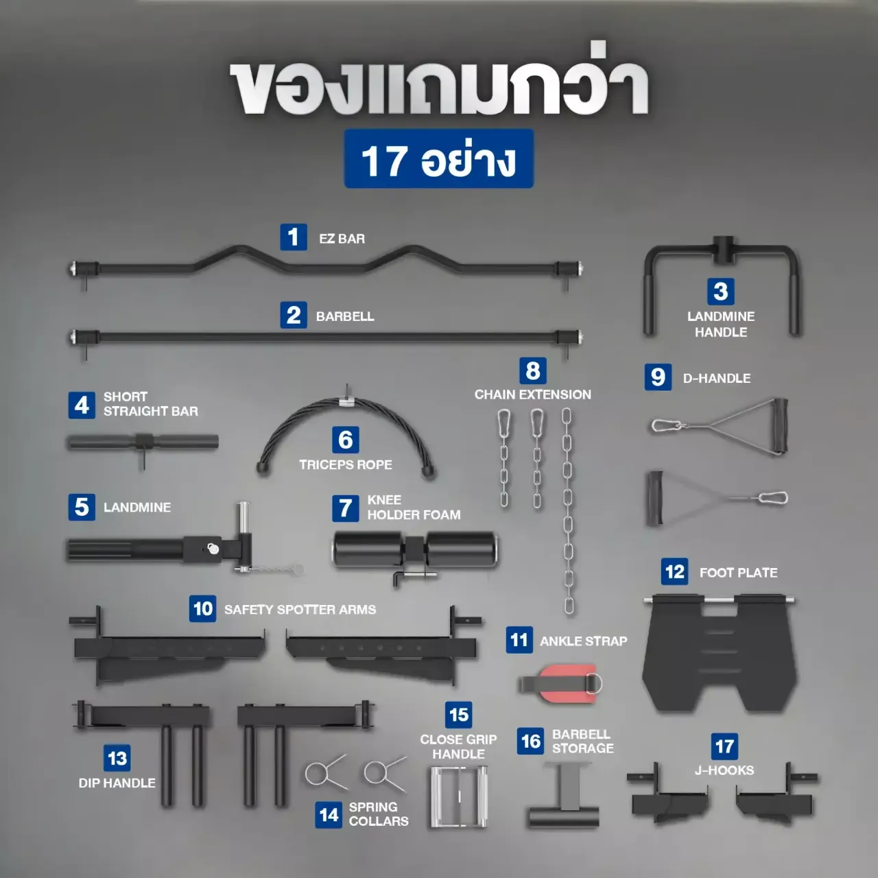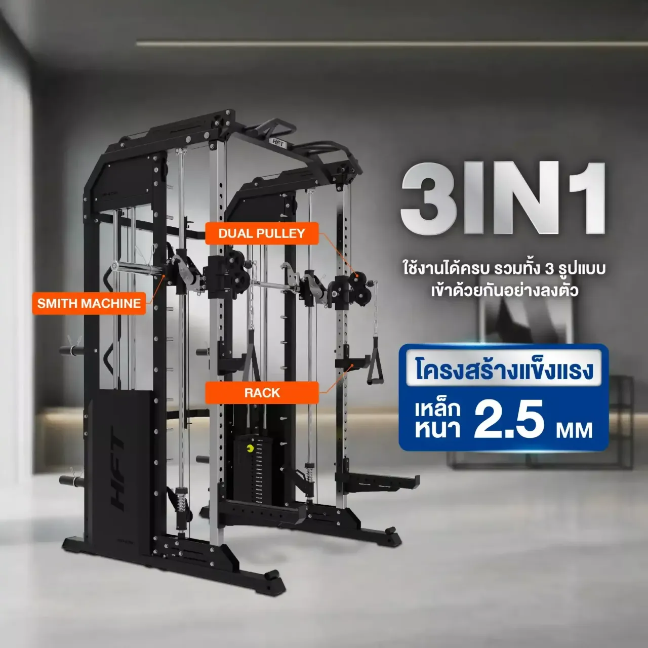 - ประเภทการใช้งาน: Smith Machine, Dual Pulley, Half Rack, Functional Trainer