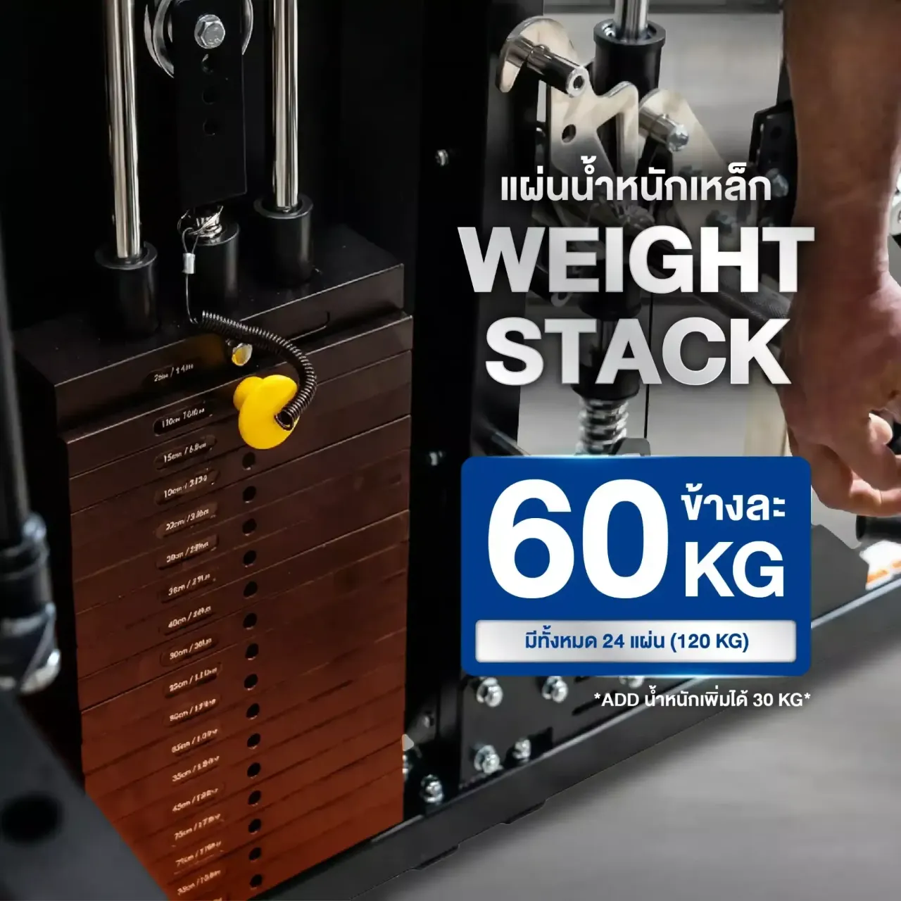 - ชุดน้ำหนัก (Weight Stack): 60 กก. ต่อข้าง (รวม 120 กก.)