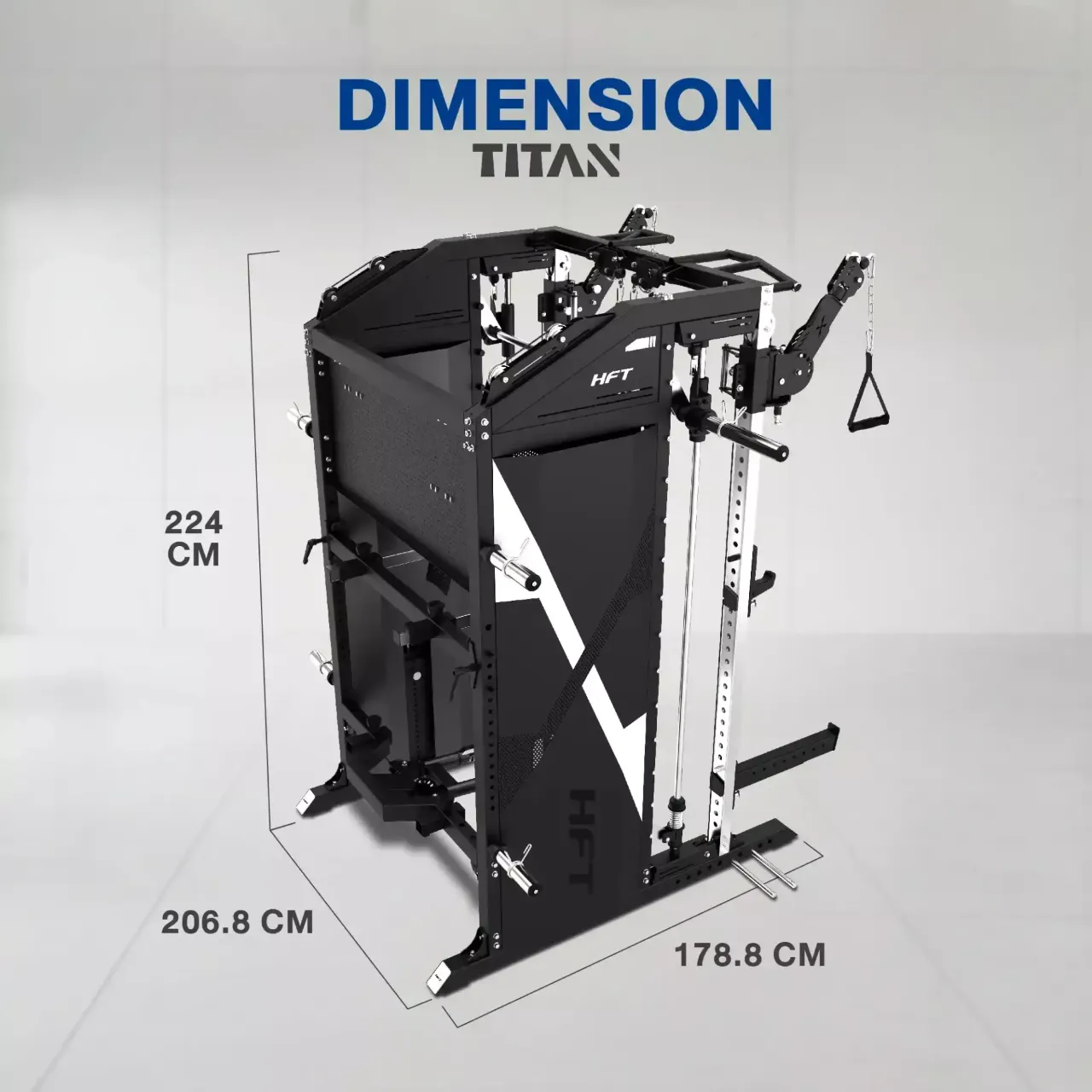 Smith Machine Titan คือเครื่องออกกำลังกายมัลติฟังก์ชันแบบครบวงจร ที่ออกแบบมาเพื่อผู้ที่ต้องการเครื่องฝึกเพียงเครื่องเดียวแต่รองรับการฝึกได้หลากหลายรูปแบบ ทั้งการฝึกเวทแบบ Smith Machine, การฝึกด้วยสายเคเบิล, Free Weight และ Functional Training ครอบคลุมการฝึกกล้ามเนื้อทั้งร่างกาย