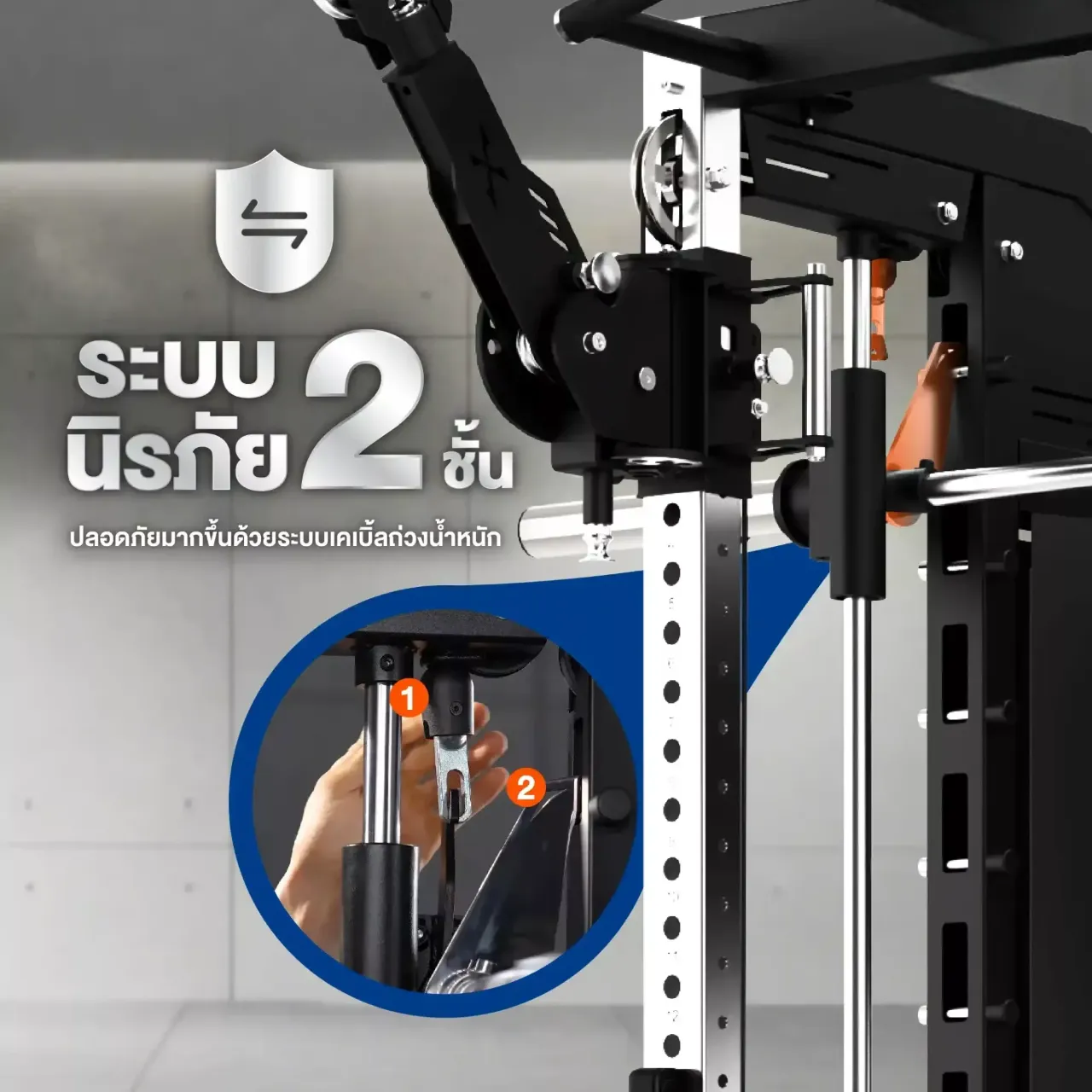 เครื่องรุ่นนี้ถูกพัฒนาเพื่อตอบโจทย์การใช้งานในฟิตเนสและโฮมยิมระดับจริงจัง ด้วยโครงสร้างเหล็กหนา 2 มม. ระบบสมิทแมชชีนแบบถ่วงน้ำหนักสมดุล และระบบเคเบิลคู่ที่ปรับอัตราทดได้ ช่วยให้การฝึกมีความลื่นไหล ปลอดภัย และสอดคล้องกับการใช้งานจริงในฟิตเนสระดับ Commercial